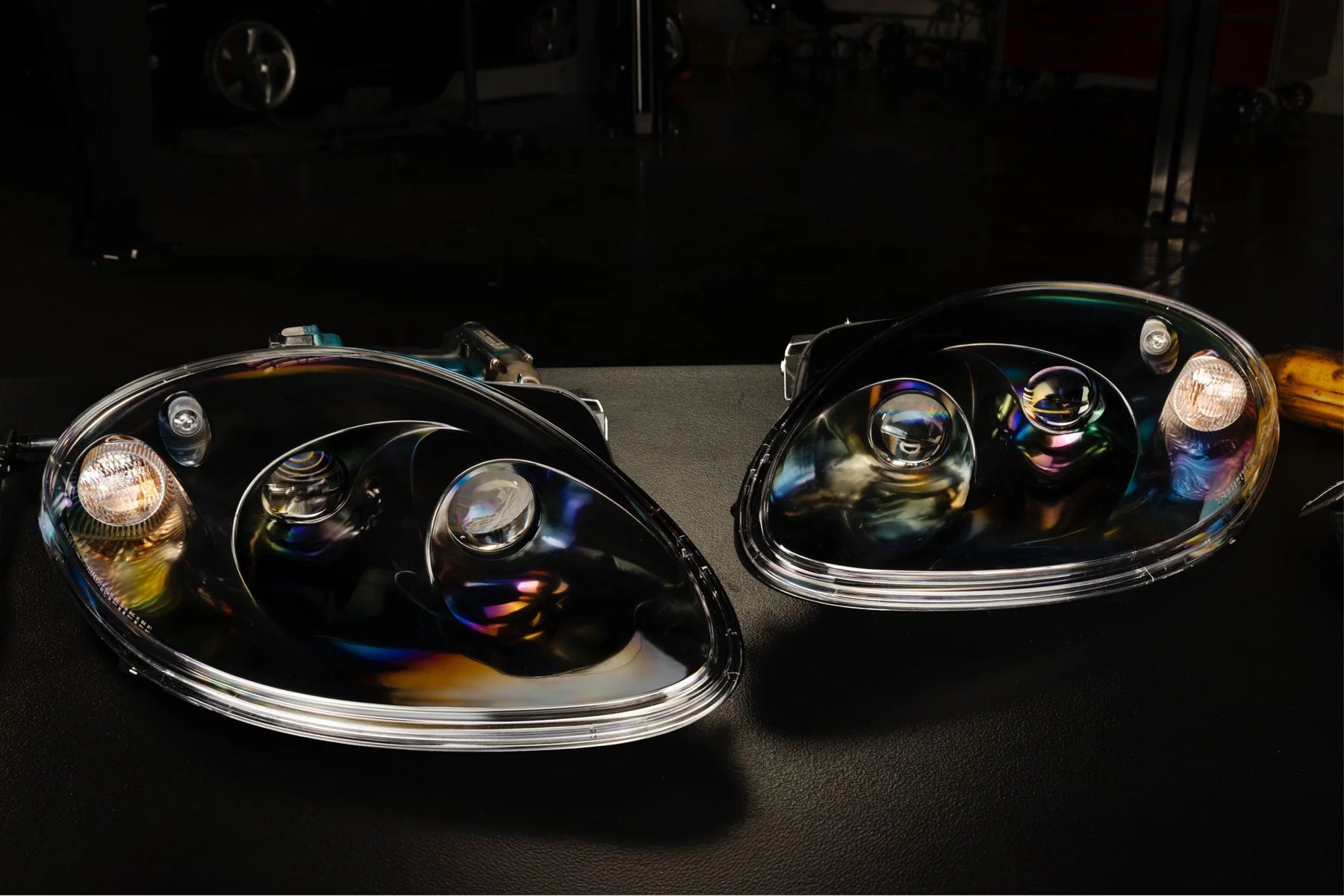 These paint-matchable Ferrari 360 headlights arrive unsealed, allowing you to customize the inner bezel for a seamless OE-style finish. Perfect for achieving a true factory look, they feature a plastic bezel ready for body color. We recommend professional painting & sealing for optimal durability and moisture resistance.
